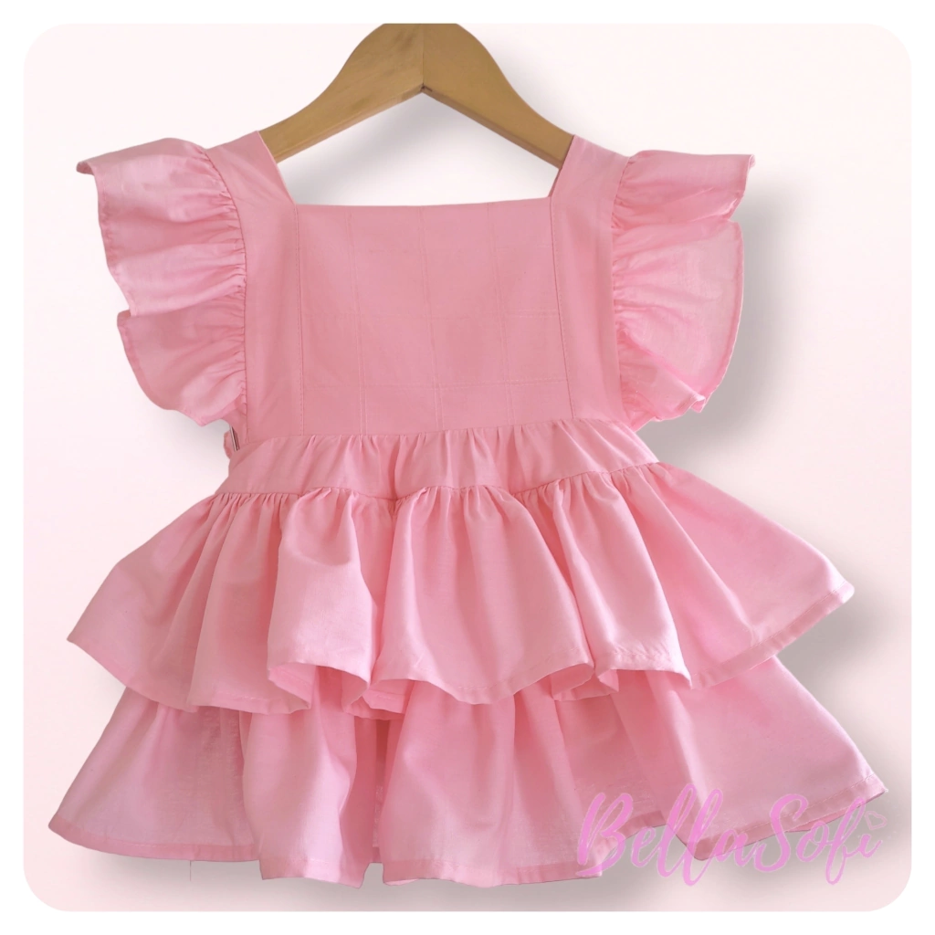 Romper confeccionado em tecido 100% algodão, com aplicação de babados e laço removível nas costas.