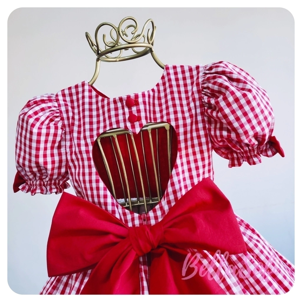 Vestido Xadrez em tecido 100% algodão, forro interno em tecido algodão, costas com decote em formato de coração e saia fechada com zíper, detalhe de faixa na cintura para dar laço nas costas.