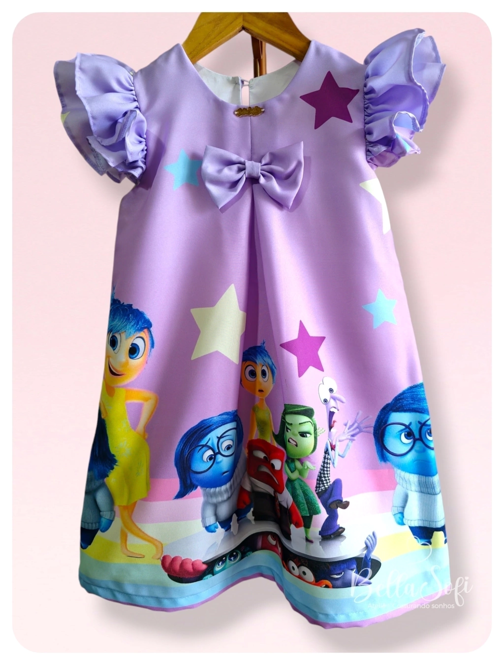 Características: Vestido infantil, modelo Trapézio, cor predominante Lilás, tecido oxfordine, costas fechada com botão, forro em tecido 100% algodão, confeccionado com alta-costura e acabamento fino.